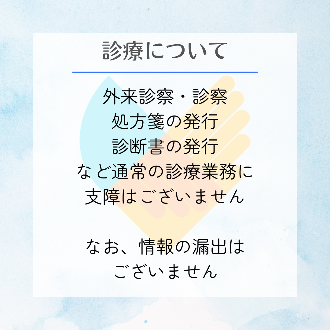 ※生活保護受給中の方については必ず医療券をお持ちになってください。ただし、生活保護受給中の方で、当院では精神科のみの通院であって、内科など他の診療科について別の医療機関に通院中の場合、再診で医療券が不要となる場合や医療券が発行されない場合があります。